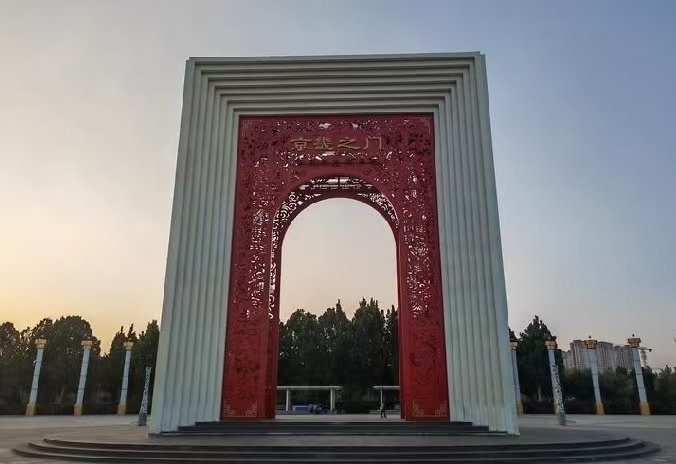 这座雕塑位于保定东站站前广场,总高16.8米,东西跨度7米,南北跨度13米,设计以门的立意为出发点,由现代门与古城圆拱门组成,剩余空间由"窗连接,充分弘扬了保定历史文化传承,彰显了古城魅力,营造出厚重的历史感与现代蓬勃的城市气息。