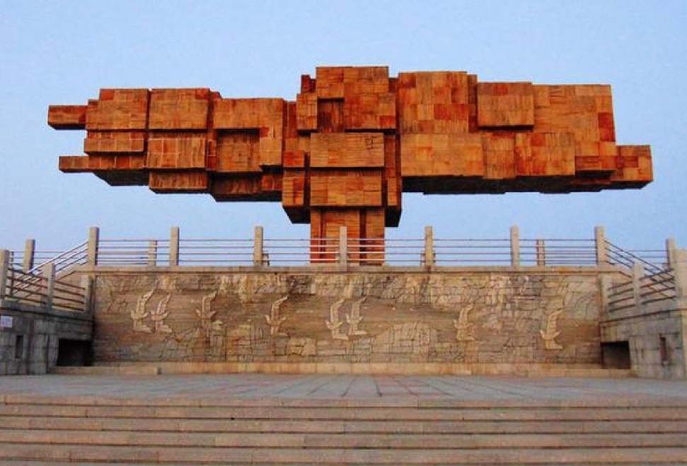 这座雕塑位于威海公园中心文化广场,高10.75米,长27米,由中央美术学院孙伟教授设计,采用泥塑形式,展现了大海的奔放和力量。