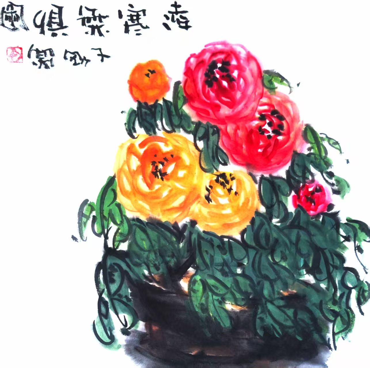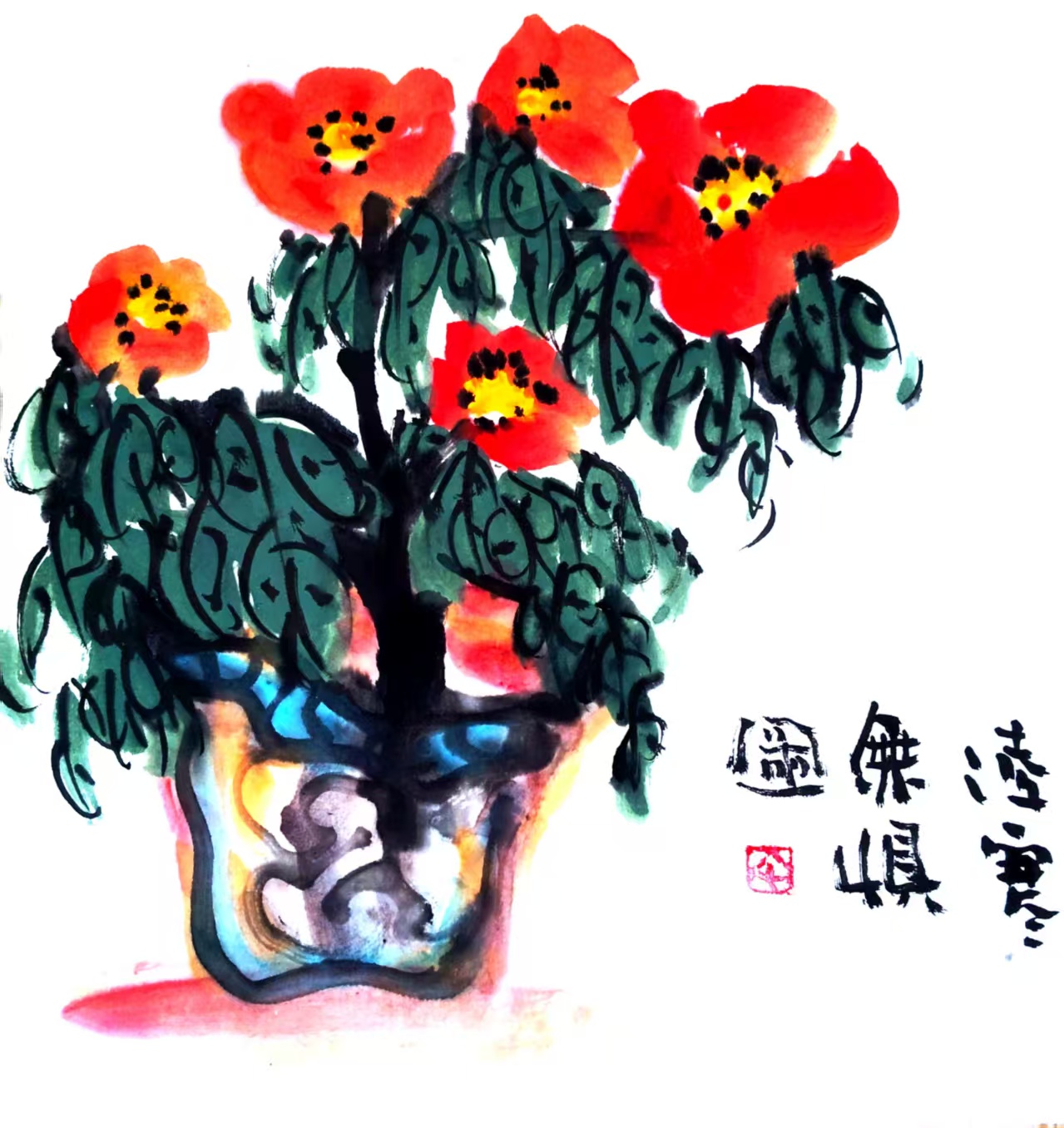 写意小品画《凌寒独自开》(1)33x33cm 2025