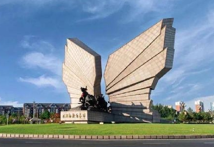 绥化市安达的“牛城”雕塑是安达市的市标,名为“不用扬鞭自奋蹄”雕像。