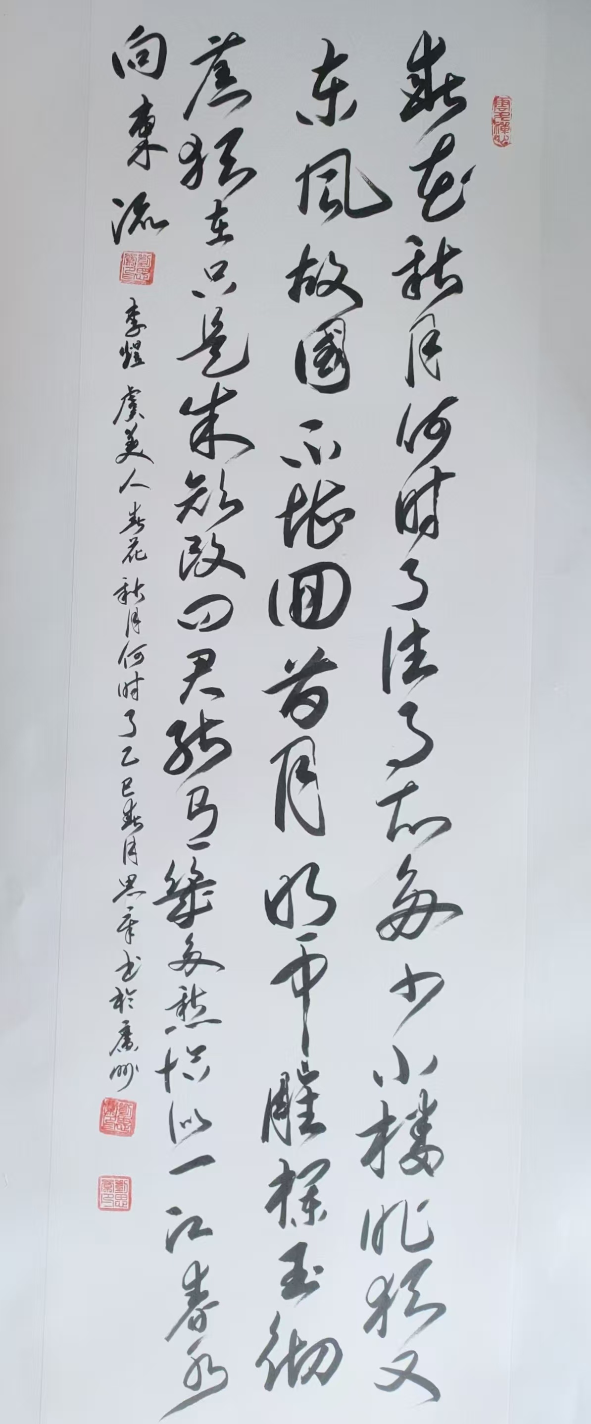 自幼喜爱书法,因对书法的爱好,曾多次拜会过中国书法名家陈金章(广美老院长),谭方、陈敬东院長,留美著名书画艺术家今雨等前辈、名师的指点和自己多年刻苦的磨练学习后,书艺有了较大的提高。其作品个性鲜明◇神采飞扬,用笔简洁流畅,在创作实践与丰富新理论方面,兼容并蓄,大胆创新,精心创作多幅具有较高艺术研究价值的上佳作品,在书画界引起广泛的关注。不少作品受到各界人士的欢迎和好评。