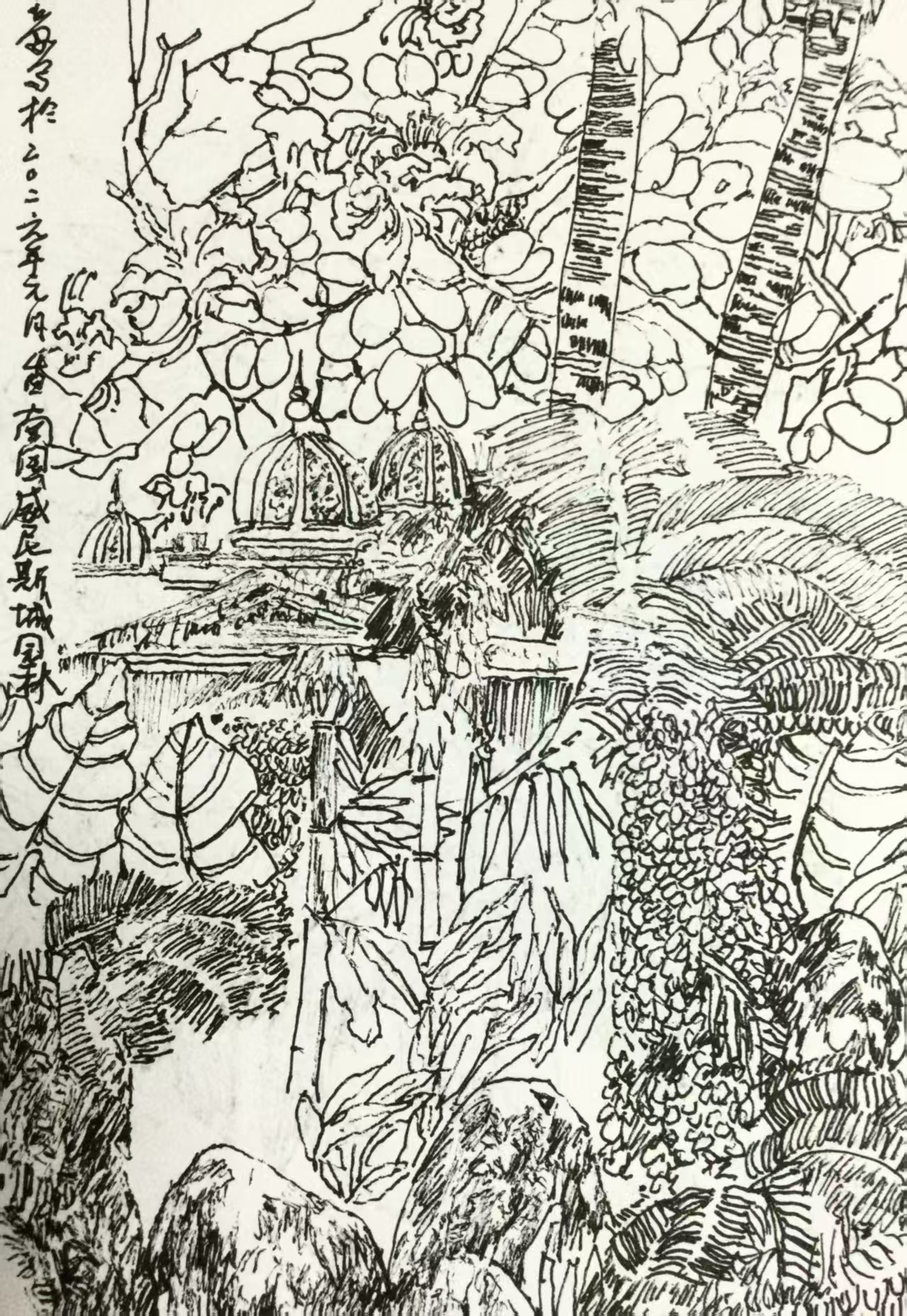 郑仁安 ||海南《南国威尼斯城》园林速写作品欣赏(6)