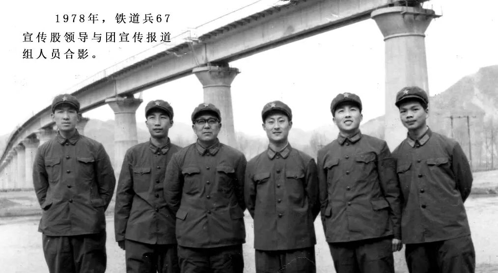 1978年宣传股股长雷鸿彩(左3)同报道组人员合影,作者(左1)