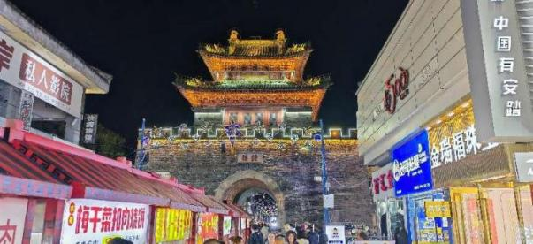 灯火通明的鼓楼及街巷。 “汴梁老黄记”百年老店灌汤包子,就它啦!
