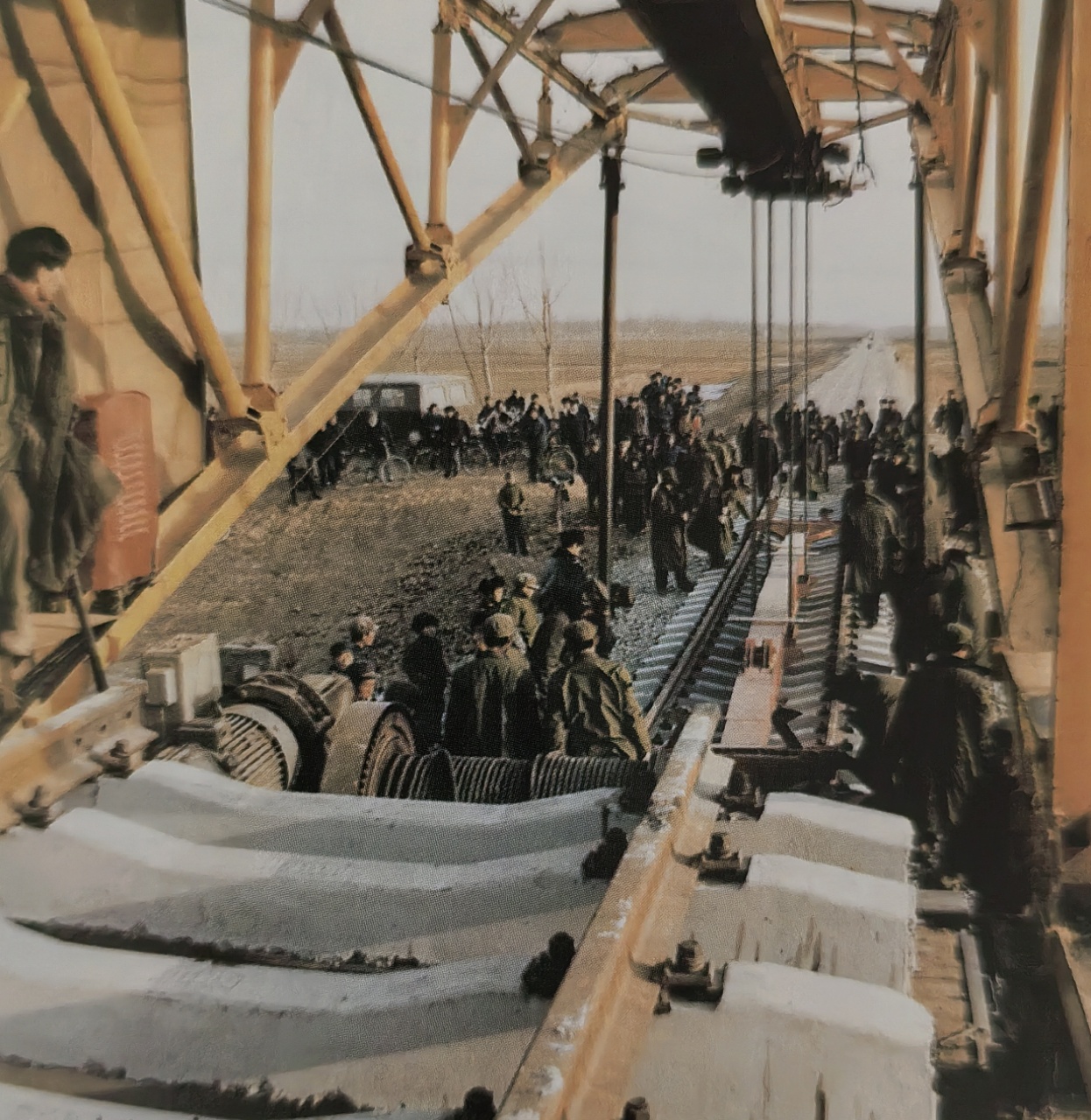 铁道兵铺轨队在前进