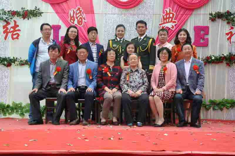 2016年春,时年92岁的卞玉琴老人同全家成员一起幸福的参加孙子辈的婚礼