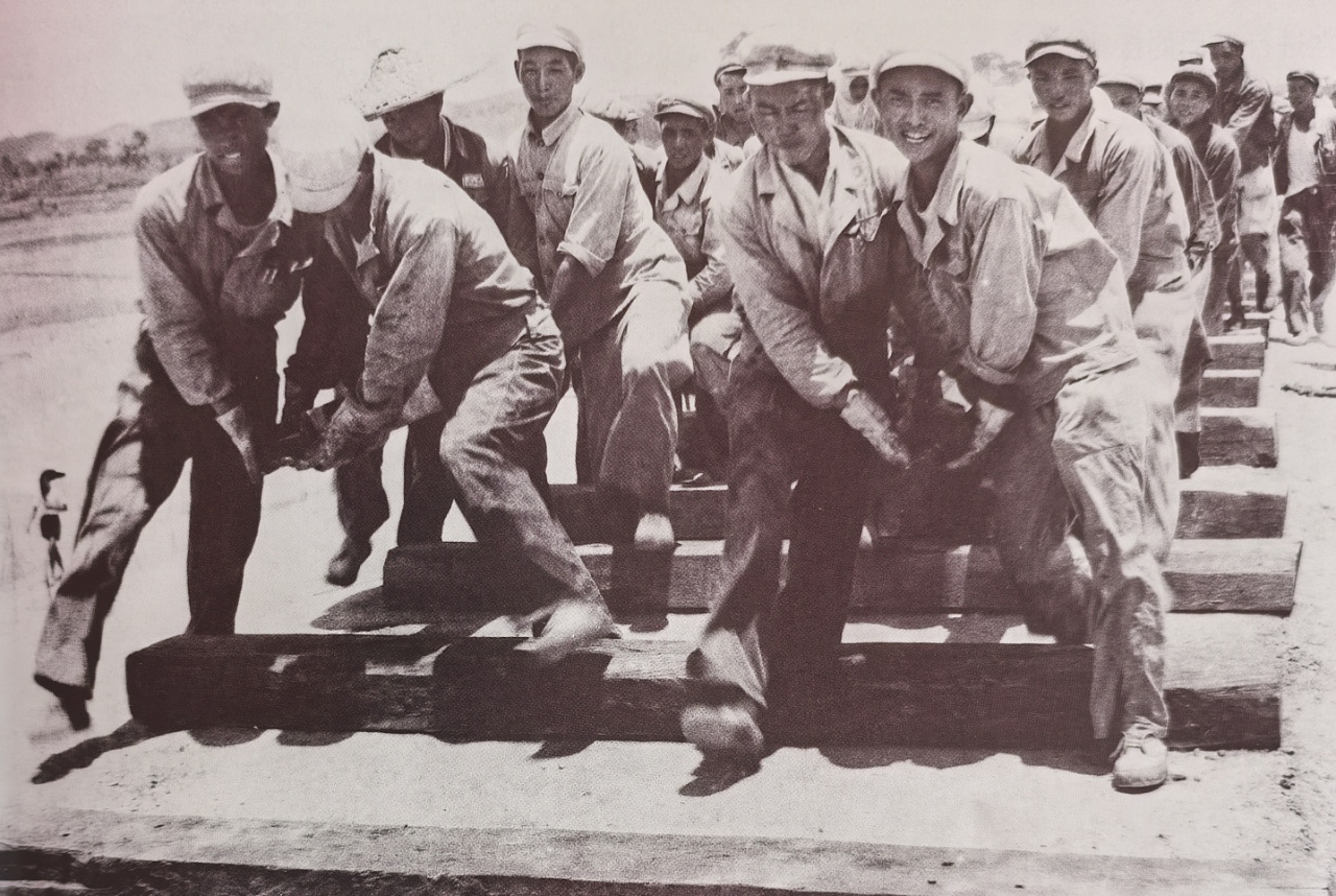 / 铁6师铺轨队认真总结经验,进度不断提高,1955年4月26日创日进铺轨6.616公里的新纪录/